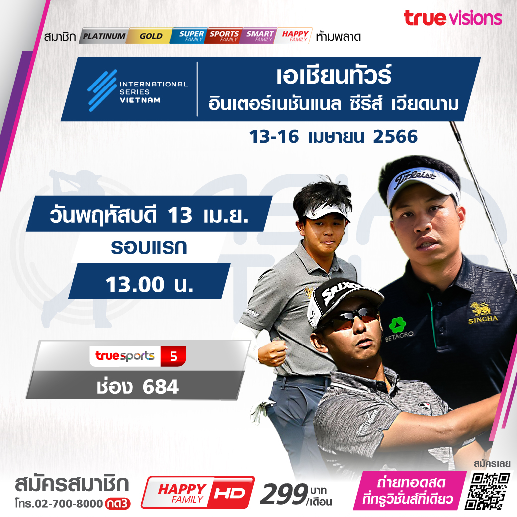ต้อนรับมหกรรมสงกรานต์ แฟนๆ กอล์ฟ หลบความร้อนมาร่วมชมและเชียร์โปรไทยสร้างผลงานสู้กับนักกอล์ฟต่างชาติ ในรายการสำคัญของเอเชียน ทัวร์ อินเตอร์เนชั่นแนล ซีรีส์ เวียดนาม เกมที่เดิมพันแชมป์และเงินรางวัลมหาศาล ใครจะเป็นแชมป์ปีนี้ ชมสด ครบทุกรอบ ชมสด ทาง ทรูวิชั่นส์ ที่เดียว