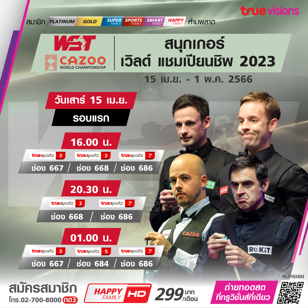 การรอคอยของแฟนๆ สิ้นสุดลงแล้วกับสนุกเกอร์รายการสุดท้ายของฤดูกาล ศึก เวิลด์ แชมเปี้ยนชิพ ที่สังเวียน ครูซิเบิ้ล เธียเตอร์ เมืองเชฟฟิลด์ ประเทศอังกฤษ สุดยอดนักสอยคิวระดับพระกาฬของโลกมาลุ้นแชมป์โลก 2023 แบบครบๆ ใครจะเป็นแชมป์คนใหม่ปีนี้่ เชียร์สดๆ เอ็กซ์คลูซีฟ ชมสด ทาง ทรูวิชั่นส์ ที่เดียว