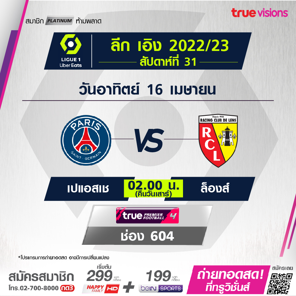 PSG vs Lens เวลา 02.00-04.00 ทางช่อง TPF 4 (604)