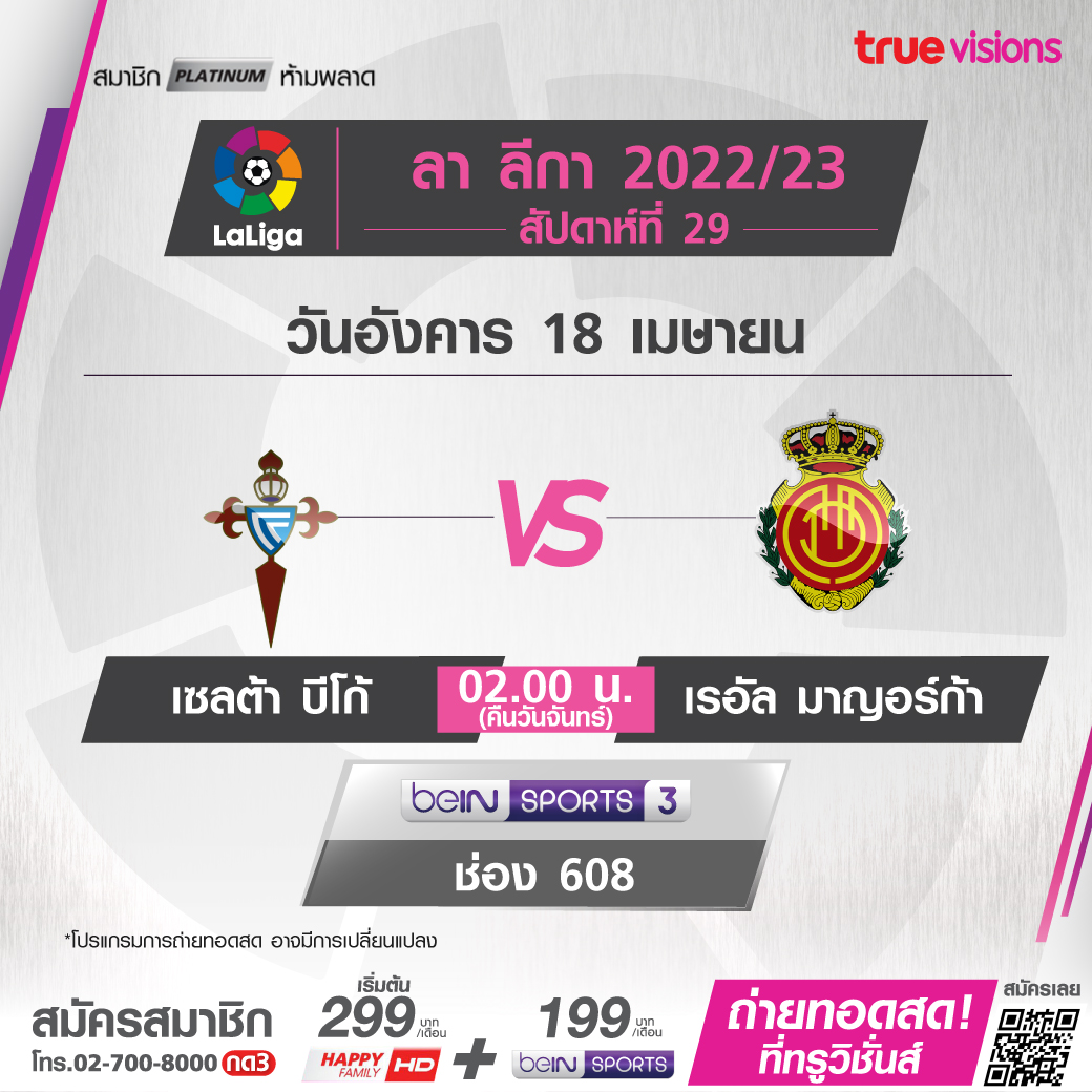 Celta vs Mallorca เวลา 02.00-04.00 ทางช่อง beIN 3 (608)