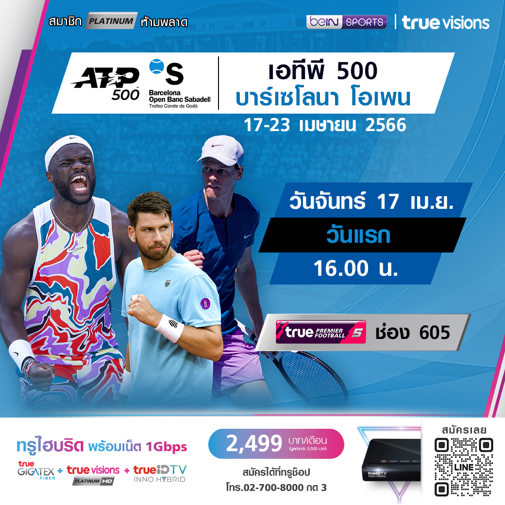เกมอึดของคนแกร่ง ช่วงเวลาแห่งการทดสอบฝีมือ จิตใจ และร่างกายที่จะวัดกันว่าใครจะยืนหนึ่งเป็นแชมป์ เอทีพี 500 ซีรี่ส์ สัปดาห์นี้ไปกันที่แดนกระทิงดุ สเปน กับรายการแห่งศักดิ์ศรี บาร์เซโลน่า โอเพ่น 2023 เกมดุเดือดทุกแต้ม ทุกแม็ตช์ ทุกรอบ ใครจะก้าวเป็นแชมป์ปีนี้่ ชมสด ครบทุกรอบ ชมสด ทาง ทรูวิชั่นส์ ที่เดียว