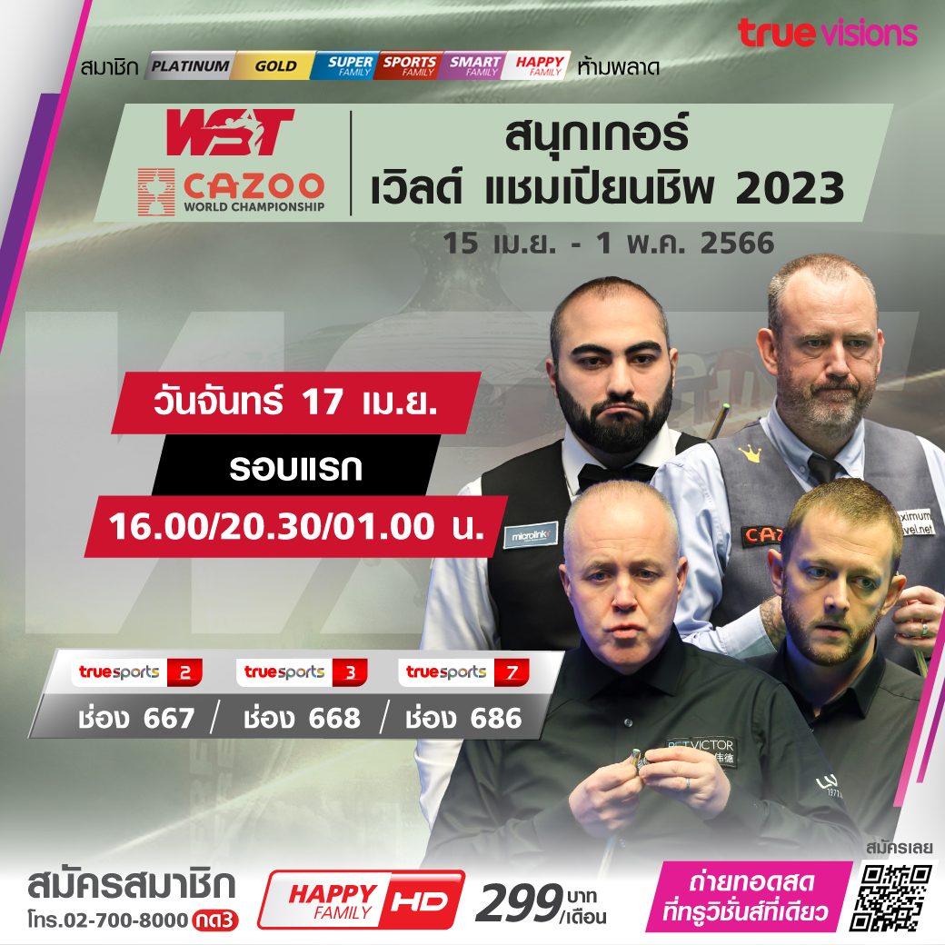การรอคอยของแฟนๆ สิ้นสุดลงแล้วกับสนุกเกอร์รายการสุดท้ายของฤดูกาล ศึก เวิลด์ แชมเปี้ยนชิพ ที่สังเวียน ครูซิเบิ้ล เธียเตอร์ เมืองเชฟฟิลด์ ประเทศอังกฤษ สุดยอดนักสอยคิวระดับพระกาฬของโลกมาลุ้นแชมป์โลก 2023 แบบครบๆ ใครจะเป็นแชมป์คนใหม่ปีนี้่ เชียร์สดๆ เอ็กซ์คลูซีฟ ชมสด ทาง ทรูวิชั่นส์ ที่เดียว