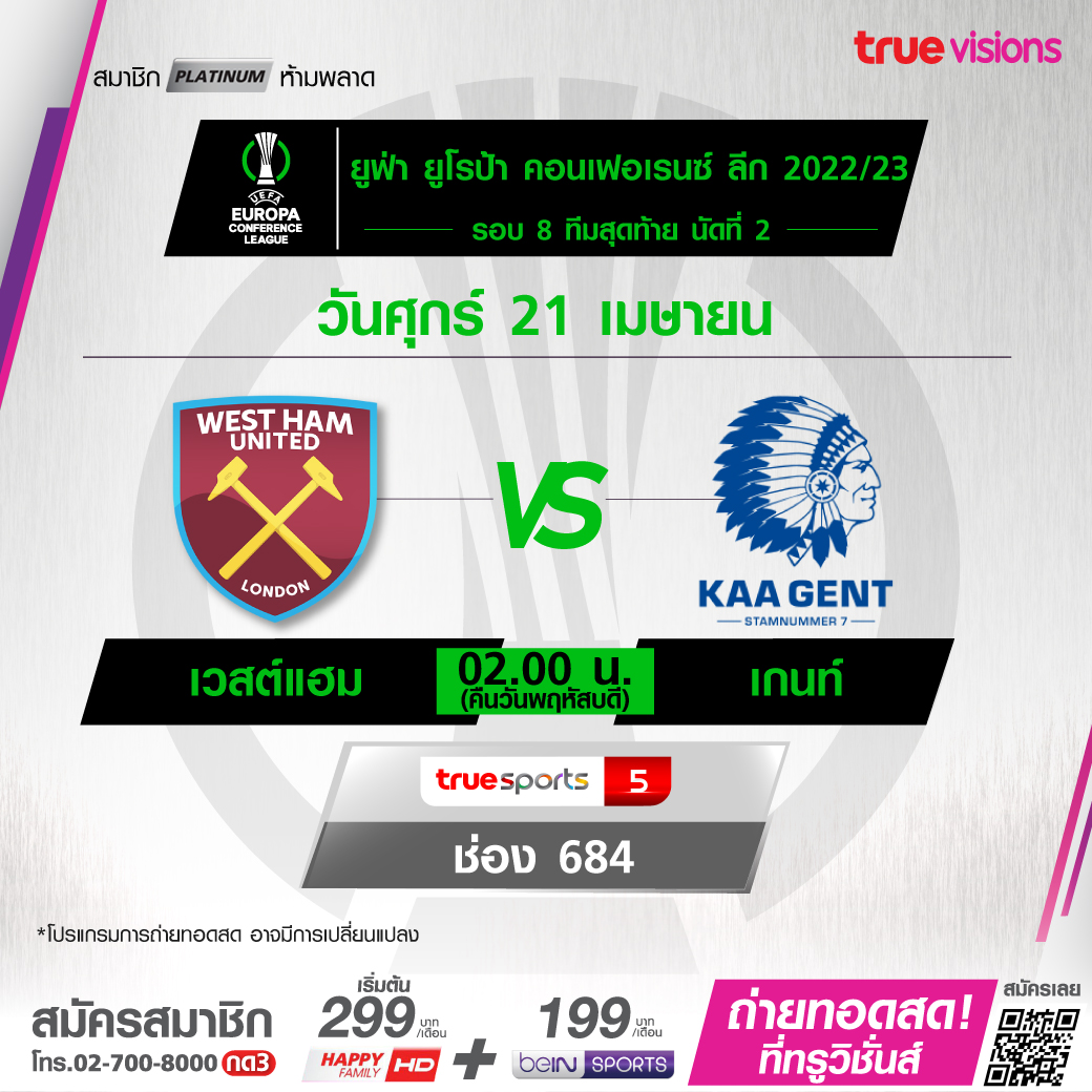 West Ham vs Gent เวลา 02.00-04.00 ทางช่อง TS 5 (684)