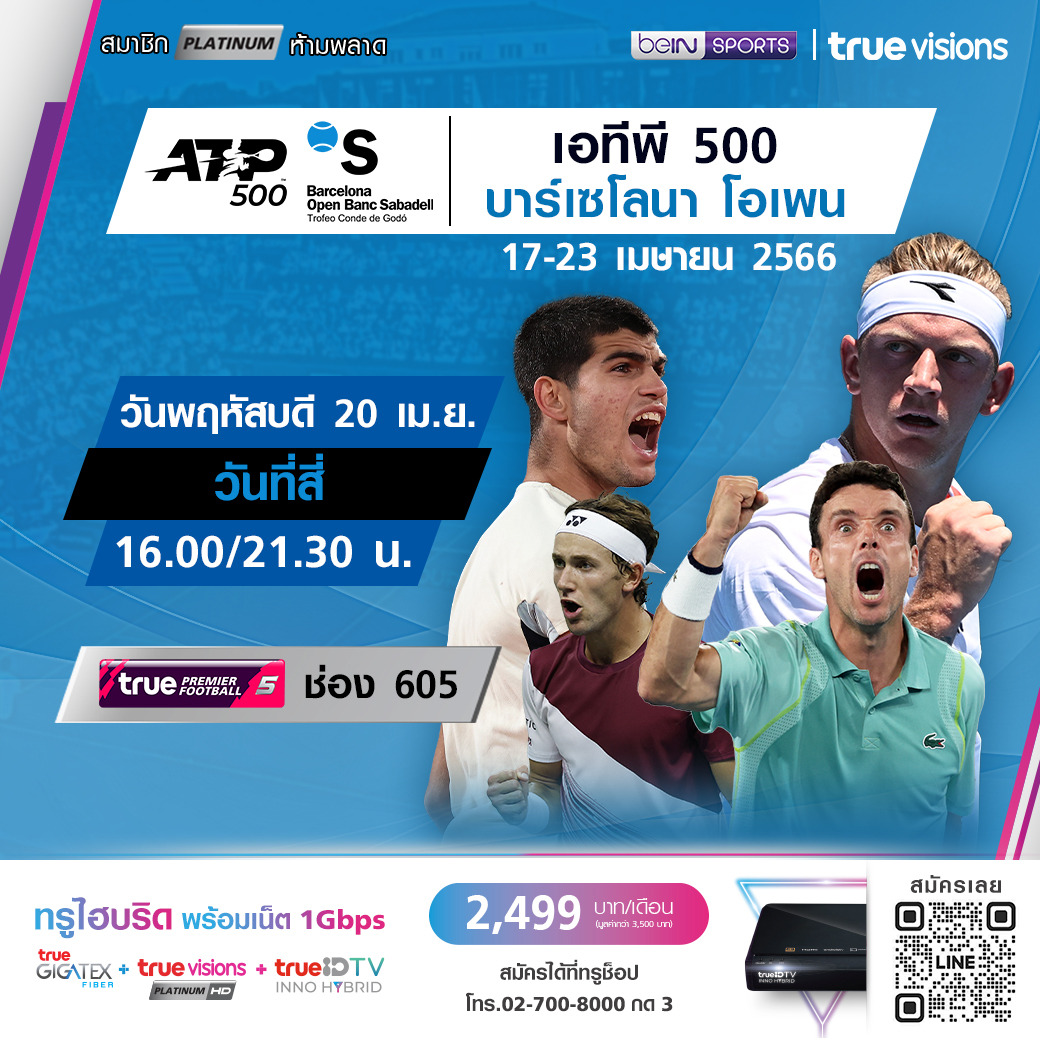 ศึกเทนนิส เอทีพี 500 ซีรี่ส์ สัปดาห์นี้ไปกันที่แดนกระทิงดุ สเปน กับรายการแห่งศักดิ์ศรี บาร์เซโลน่า โอเพ่น 2023 เกมดุเดือดทุกแต้ม ทุกแม็ตช์ ทุกรอบ ใครจะก้าวเป็นแชมป์ปีนี้่ ชมสด ครบทุกรอบ ชมสด ทาง ทรูวิชั่นส์ ที่เดียว