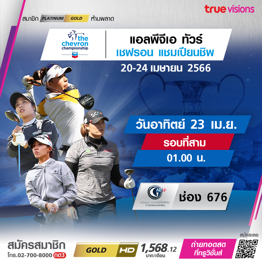 เมเจอร์แรกของ แอลพีจีเอ ทัวร์ รายการ เดอะ เชฟรอน แชมเปี้ยนชิพ ที่สนาม เดอะ คลับ แอท คาร์ลตัน วูดส์ ในเมืองวูดแลนด์ รัฐเท็กซัส เชียร์โปรสาวไทยให้สร้างผลงานกระหึ่มโลก ร่วมกับโปรแถวหน้าของทัวร์ ใครจะท็อปฟอร์ม ใครจะคว้าแชมป์ ชมสดทุกรอบ ชมสด ทาง ทรูวิชั่นส์