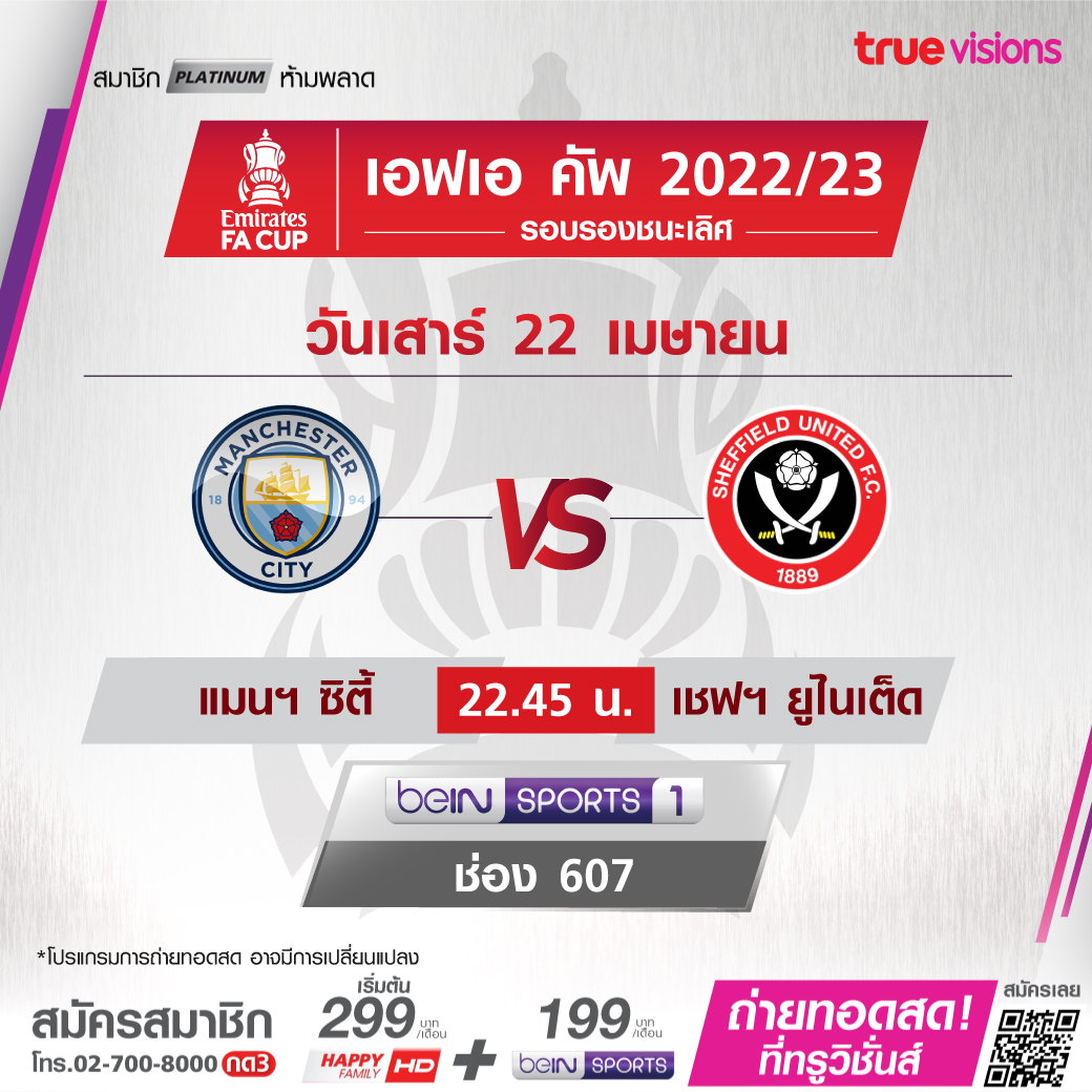 Man City vs Sheff Utd เวลา 22.45-00.45 ทางช่อง beIN 1 (607)