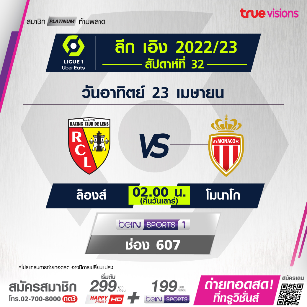 Lens vs Monaco เวลา 02.00-04.00 ทางช่อง beIN 1 (607)