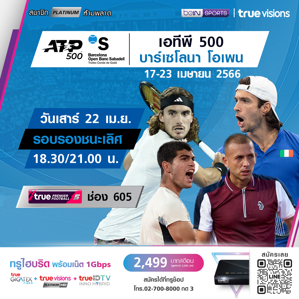 ศึกเทนนิส เอทีพี 500 ซีรี่ส์ บาร์เซโลน่า โอเพ่น 2023 มาถึงในรอบรองชนะเลิศ ใครจะก้าวไปเป็นแชมป์ปีนี้่ ชมสด ชมสด ทาง ทรูวิชั่นส์ ที่เดียว
