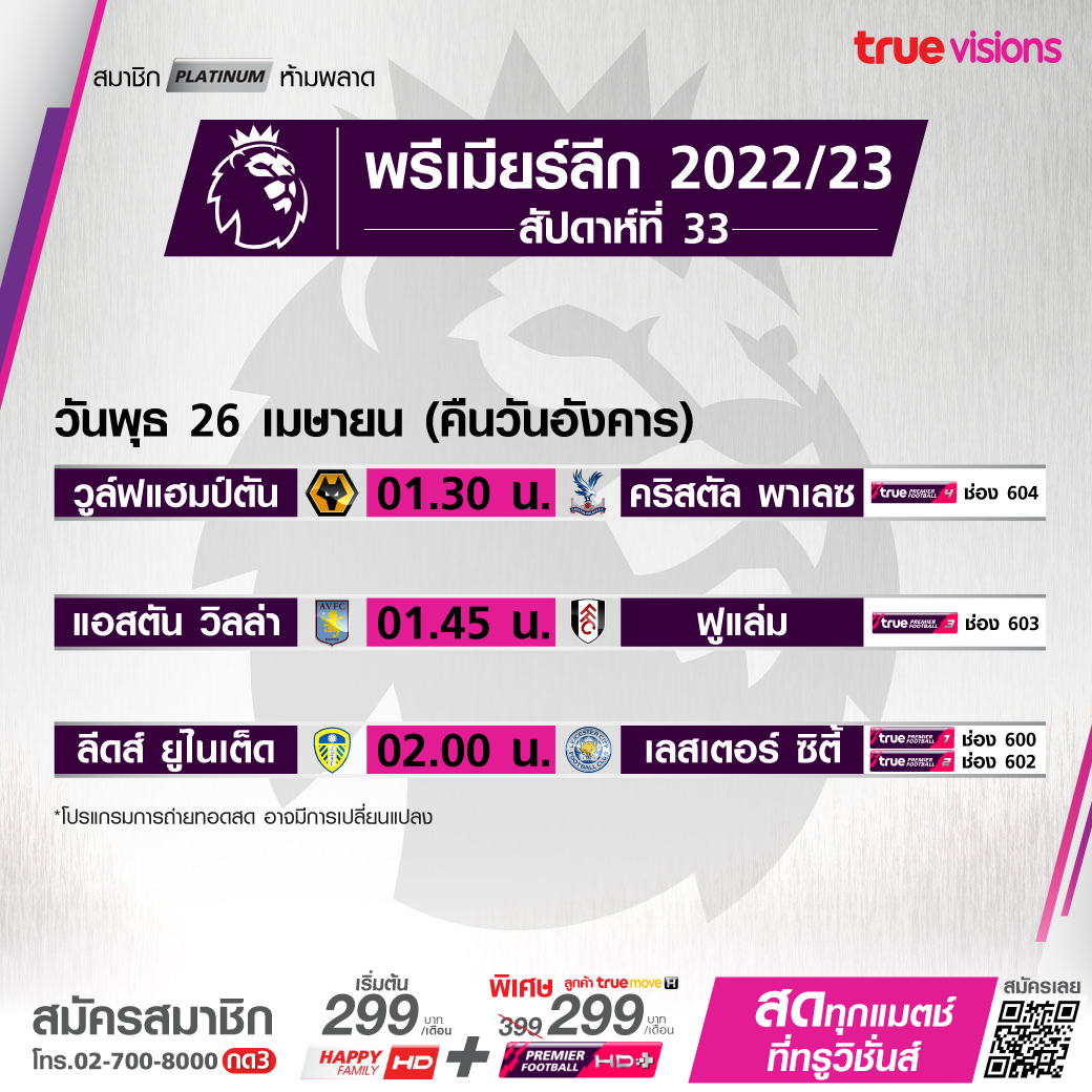 Aston Villa vs Fulham เวลา 01:45 - 03.45 ทางช่อง TPF 3 (603)
