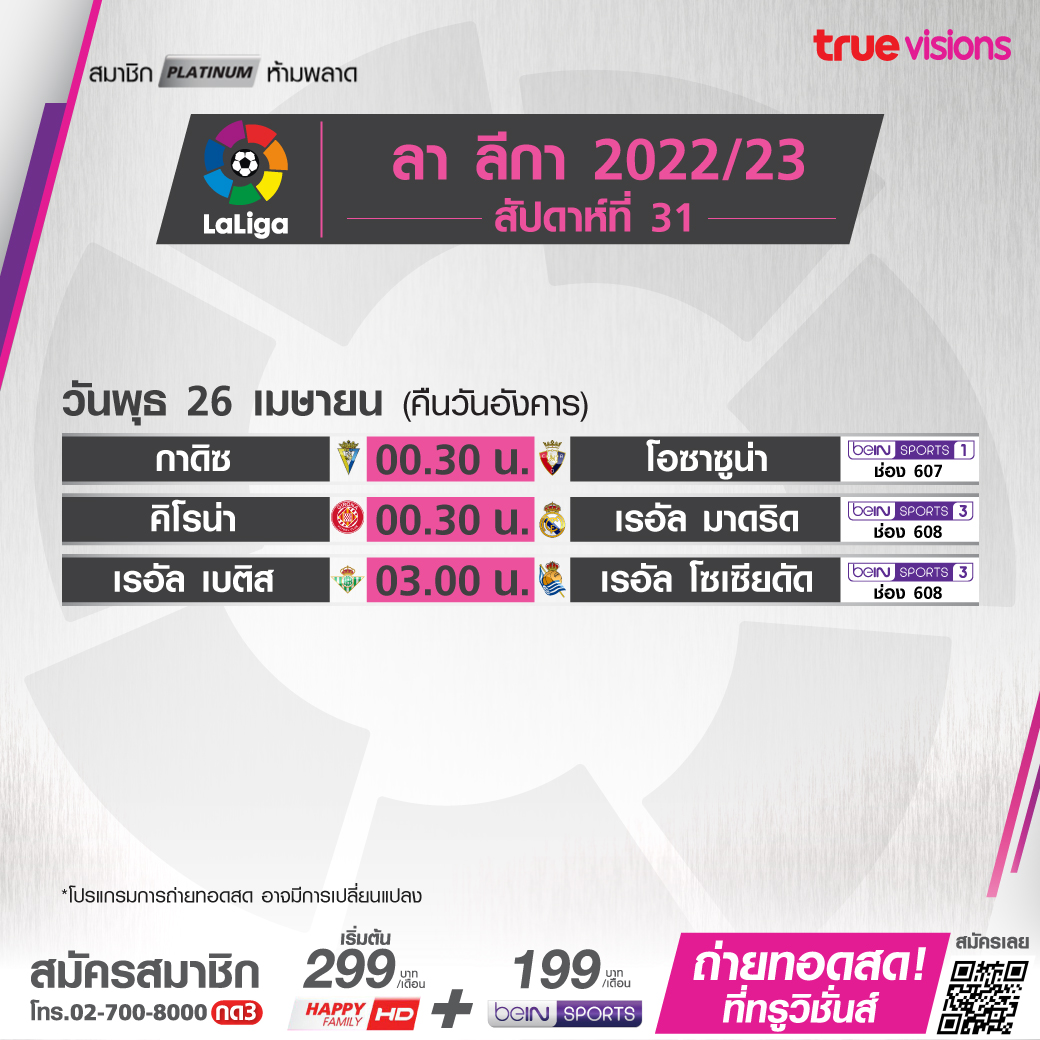 Real Betis vs Sociedad เวลา 03.00-05.00 ทางช่อง beIN 3 (608)