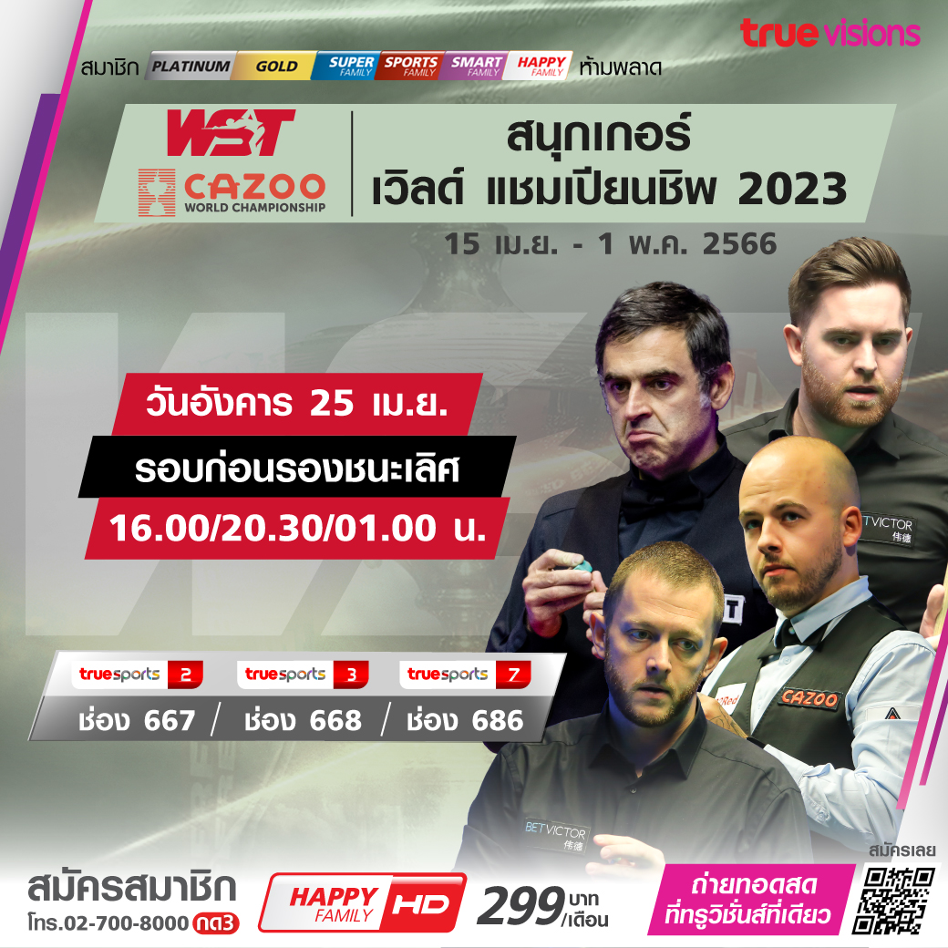 สนุกเกอร์รายการสุดท้ายของฤดูกาล ศึก เวิลด์ แชมเปี้ยนชิพ ที่สังเวียน ครูซิเบิ้ล เธียเตอร์ เมืองเชฟฟิลด์ ประเทศอังกฤษ เดินทางมาถึงในรอบก่อนรองชนะเลิศ ใครจะเป็นแชมป์คนใหม่ปีนี้่ เชียร์สดๆ เอ็กซ์คลูซีฟ ชมสด ทาง ทรูวิชั่นส์ ที่เดียว