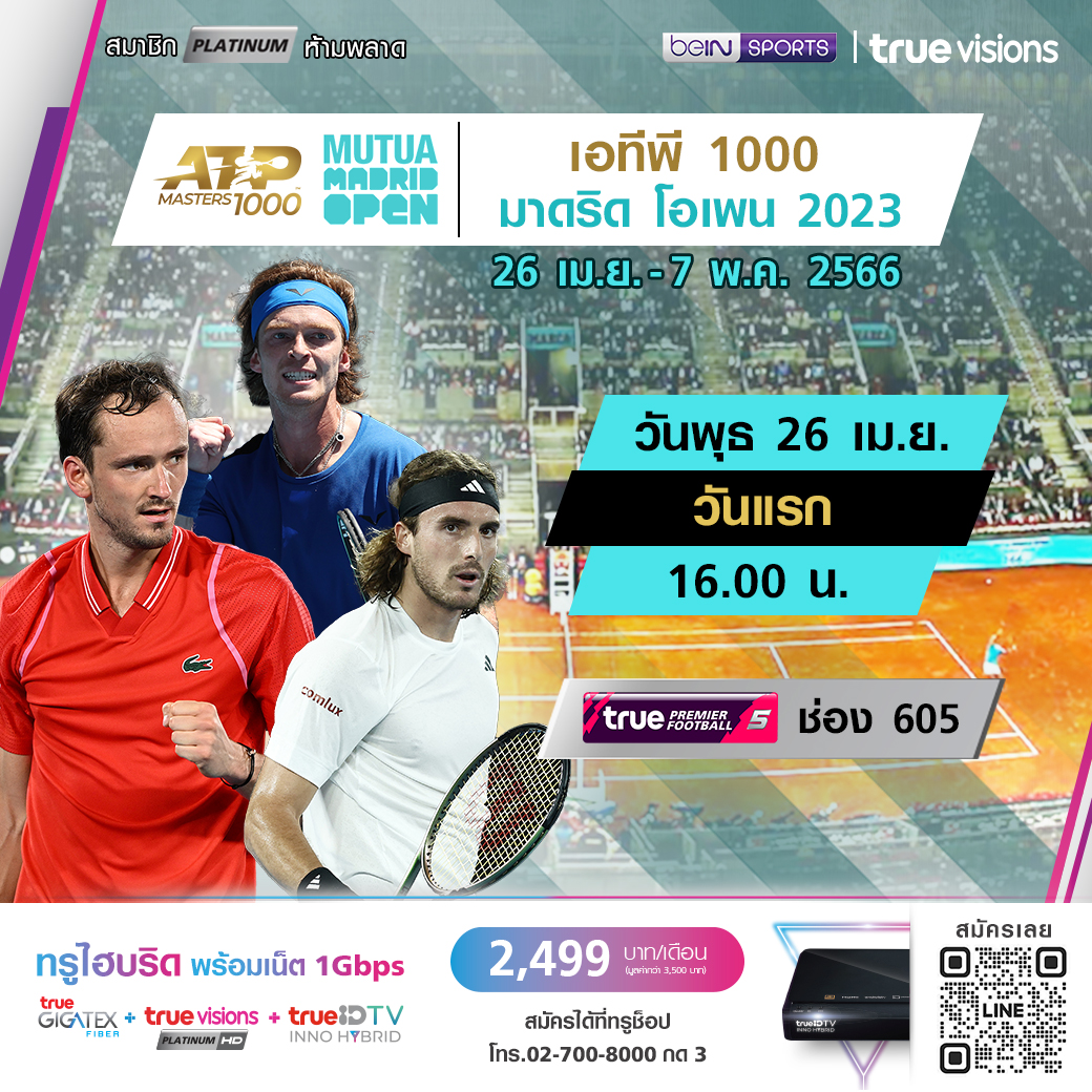 วันแรก เวลา 16.00 / 21.00 ทางช่อง True Tennis (670)