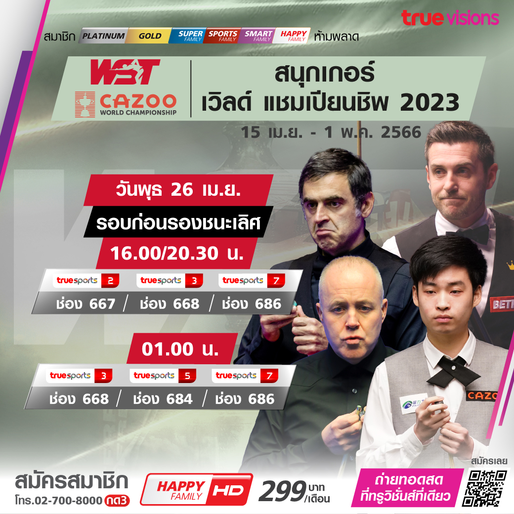 สนุกเกอร์รายการสุดท้ายของฤดูกาล ศึก เวิลด์ แชมเปี้ยนชิพ ที่สังเวียน ครูซิเบิ้ล เธียเตอร์ เมืองเชฟฟิลด์ ประเทศอังกฤษ เดินทางมาถึงในรอบก่อนรองชนะเลิศ ใครจะเป็นแชมป์คนใหม่ปีนี้่ เชียร์สดๆ เอ็กซ์คลูซีฟ ชมสด ทาง ทรูวิชั่นส์ ที่เดียว
