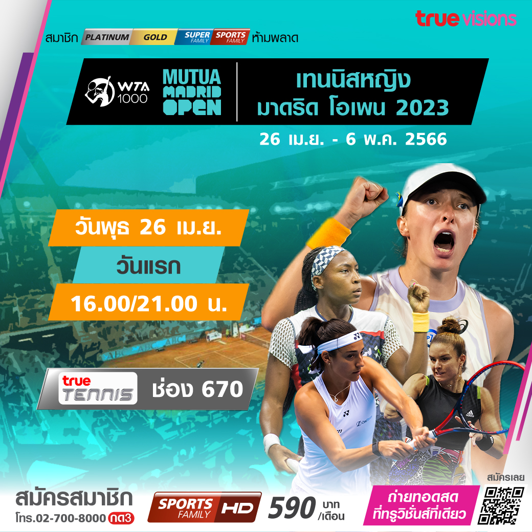 สมรภูมิรบของเทนนิสหญิงกำลังดุเดือด เข้มข้น สัปดาห์นี้ ทัพใหญ่ของดับเบิ้ลยูทีเอ ทัวร์ ไปรวมตัวกันที่เมืองหลวงของสเปน เพื่อร่วมศึกสำคัญระดับ 1000 ซีรี่ส์ มาดริด โอเพ่น 2023 ดวลเดือดกันตั้งแต่รอบแรกถึงรอบชิงชนะเลิศ ใครจะยืนหนึ่งประกาศศักดาเป็นแชมป์ปีนี้ ชมสด ทาง ทรูวิชั่นส์ ที่เดียว