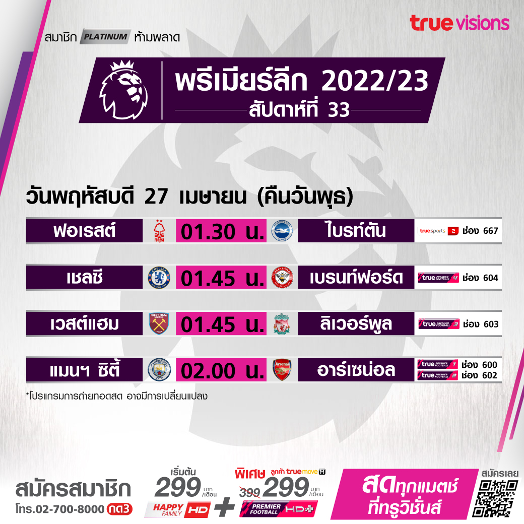 West Ham Utd vs Liverpool เวลา 01:45 - 03.45 ทางช่อง TPF 3 (603)