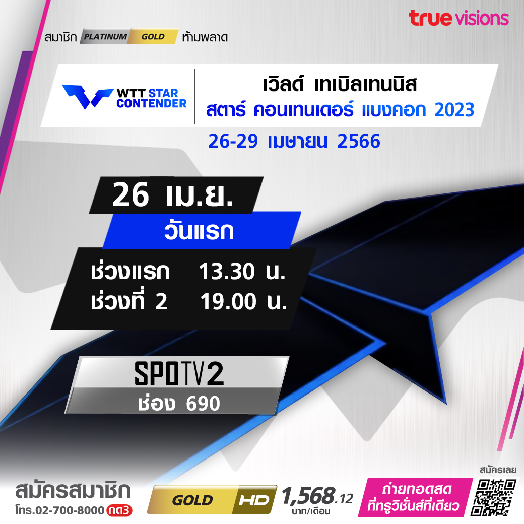 แฟนๆ พลาดไม่ได้ เมื่อศึกใหญ่ของเวิลด์ เทเบิล เทนนิส ฤดูกาล 2023 ได้โอกาสมาเยือนประเทศไทย และพร้อมสร้างสีสันจากบรรดานักกีฬาชั้นนำของโลกใน รายการ สตาร์ คอนเทนเดอร์ แบงค็อก 2023 สดจุใจ จนถึงรอบชิงชนะเลิศ ที่ ทรูวิชั่นส์