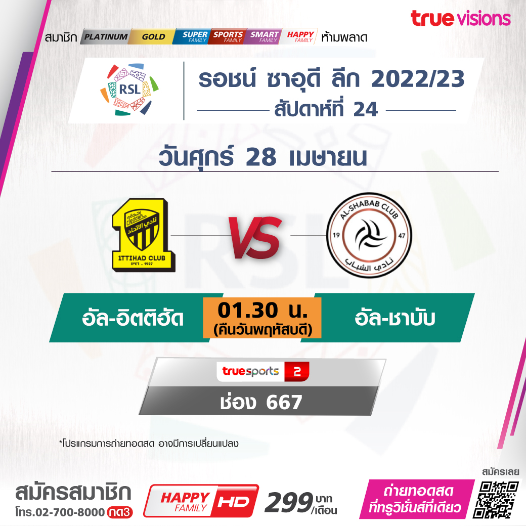 Al-Ittihad vs Al-Shabab เวลา 01.30-03.30 ทางช่อง TS 2 (667)