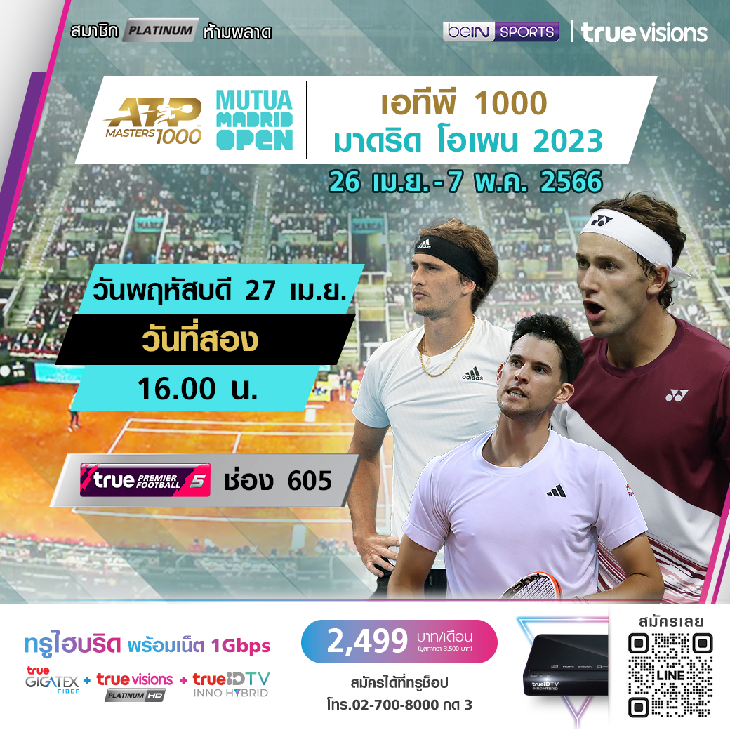 วันที่สอง เวลา 16.00 ทางช่อง True Tennis (670)