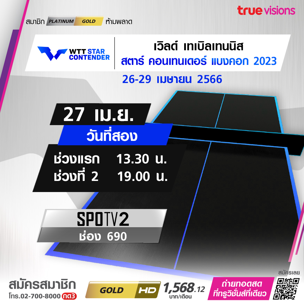 แฟนๆ พลาดไม่ได้ เมื่อศึกใหญ่ของเวิลด์ เทเบิล เทนนิส ฤดูกาล 2023 ได้โอกาสมาเยือนประเทศไทย และพร้อมสร้างสีสันจากบรรดานักกีฬาชั้นนำของโลกใน รายการ สตาร์ คอนเทนเดอร์ แบงค็อก 2023 สดจุใจ จนถึงรอบชิงชนะเลิศ ที่ ทรูวิชั่นส์