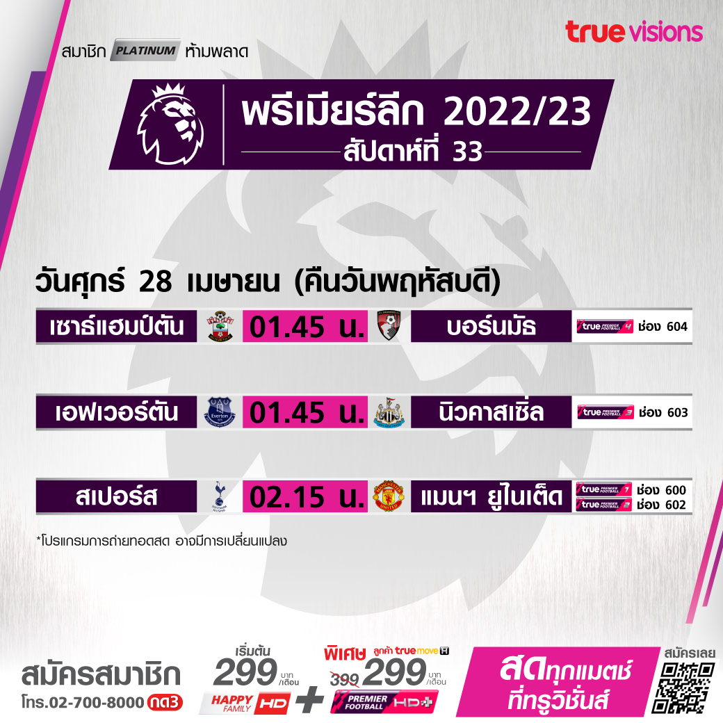 Everton vs Newcastle เวลา 01:45 - 03.45 ทางช่อง TPF 3 (603)