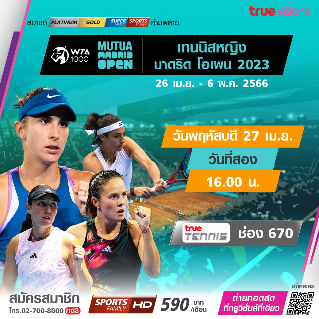 สมรภูมิรบของเทนนิสหญิงกำลังดุเดือด เข้มข้น สัปดาห์นี้ ทัพใหญ่ของดับเบิ้ลยูทีเอ ทัวร์ ไปรวมตัวกันที่เมืองหลวงของสเปน เพื่อร่วมศึกสำคัญระดับ 1000 ซีรี่ส์ มาดริด โอเพ่น 2023 ดวลเดือดกันตั้งแต่รอบแรกถึงรอบชิงชนะเลิศ ใครจะยืนหนึ่งประกาศศักดาเป็นแชมป์ปีนี้ ชมสด ทาง ทรูวิชั่นส์ ที่เดียว
