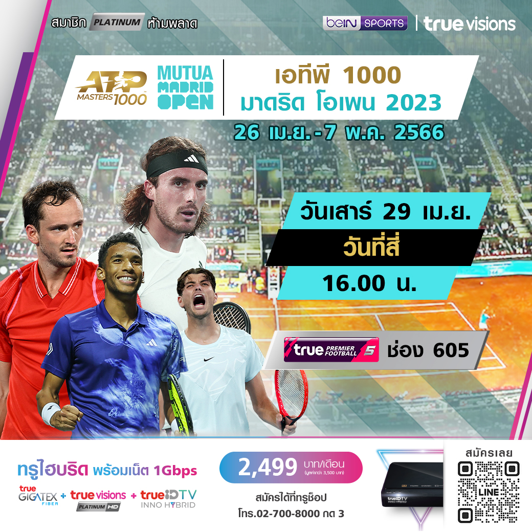 วันที่สี่ เวลา 16.00/21.00 ทางช่อง True Tennis (670)