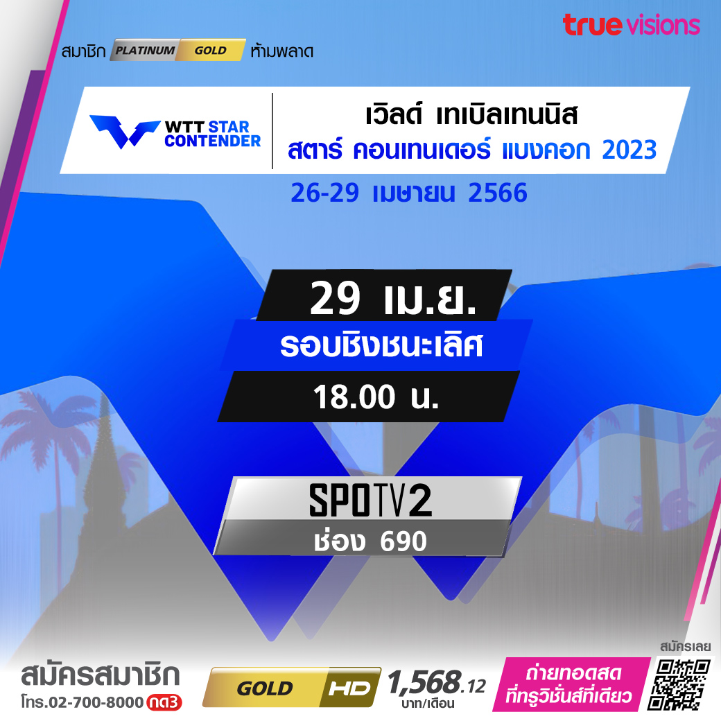 เวิลด์ เทเบิล เทนนิส ฤดูกาล 2023 ได้โอกาสมาเยือนประเทศไทย และพร้อมสร้างสีสันจากบรรดานักกีฬาชั้นนำของโลกใน รายการ สตาร์ คอนเทนเดอร์ แบงค็อก 2023 สดจุใจ จนถึงรอบชิงชนะเลิศ ที่ ทรูวิชั่นส์