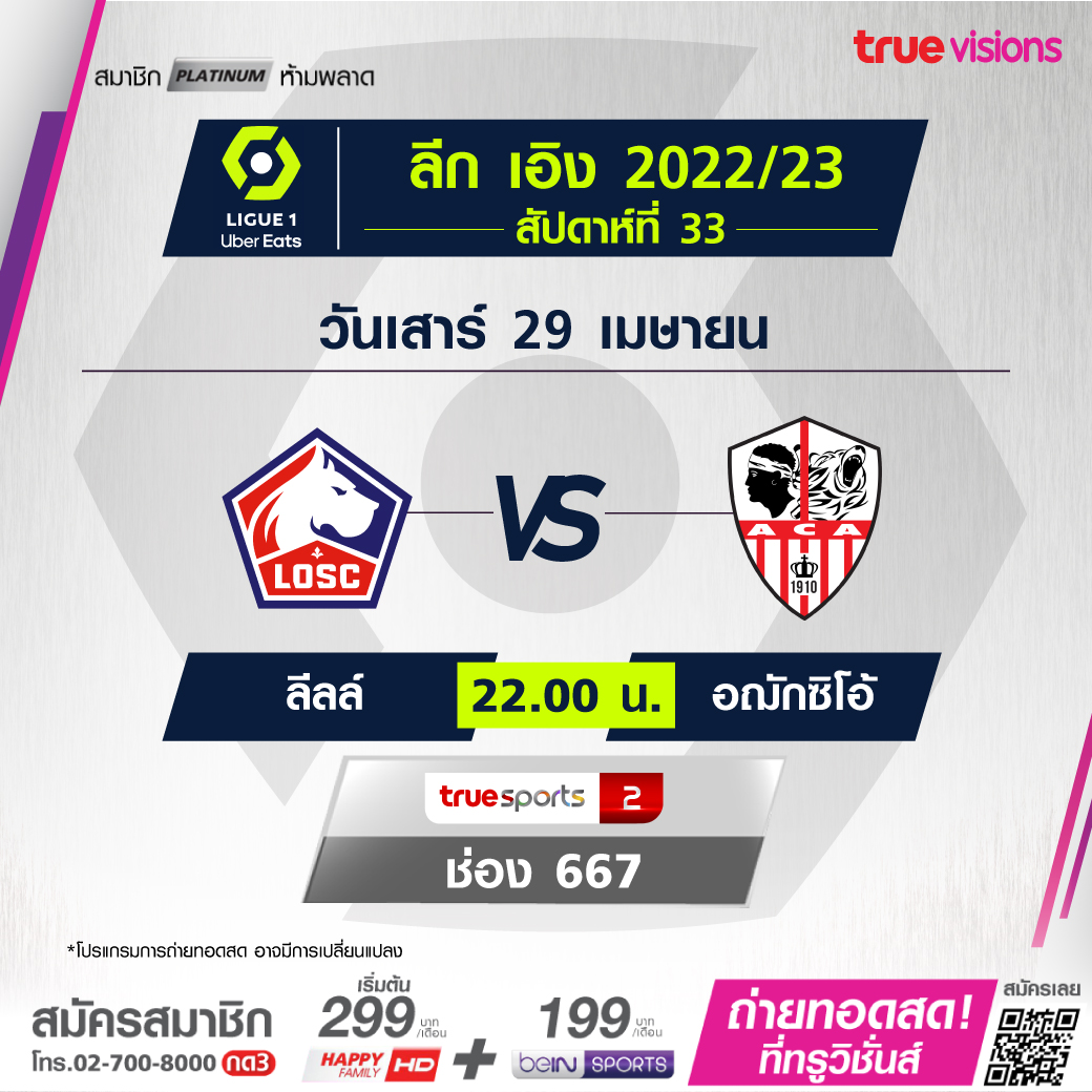 Lille vs AC Ajaccio เวลา 22.00-00.00 ทางช่อง TS 2 (667)