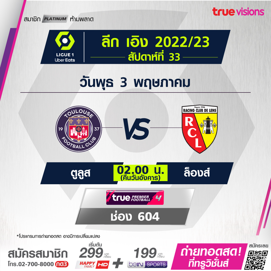 Toulouse vs Lens เวลา 02.00-04.00 ทางช่อง TPF 4 (604)