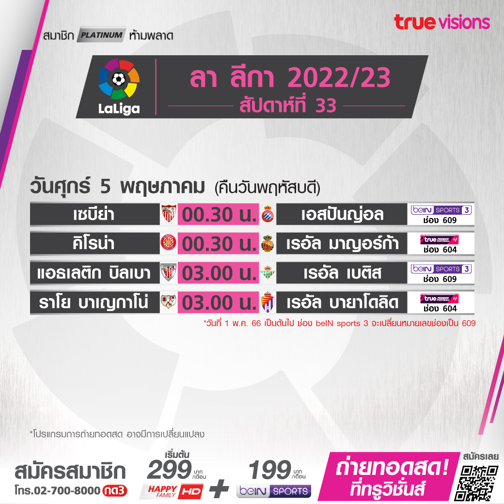 Athletic vs Real Betis เวลา 03.00-05.00 ทางช่อง beIN 3 (609)