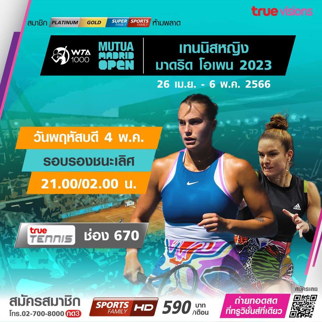 เทนนิสหญิงดับเบิ้ลยูทีเอ ทัวร์ 1000 ซีรี่ส์ มาดริด โอเพ่น 2023 มาถึงในรอบรองชนะเลิศ ใครจะยืนหนึ่งประกาศศักดาเป็นแชมป์ปีนี้ ชมสด ทาง ทรูวิชั่นส์ ที่เดียว