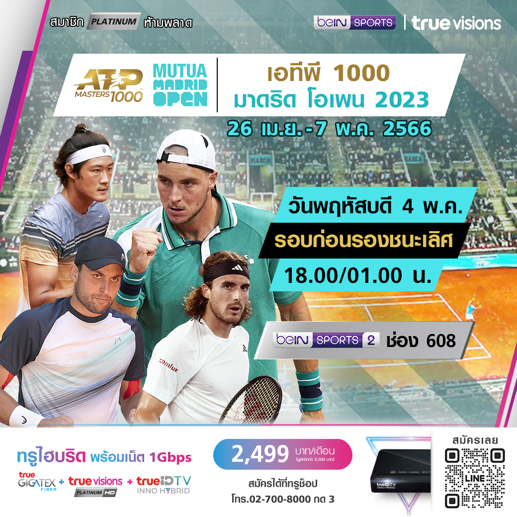 เทนนิสชายจาก เอทีพี ทัวร์ ลุ้นเป็นแชมป์รายการที่ยิ่งใหญ่ เวิลด์ ทัวร์ 1000 ซีรี่ส์ มาดริด โอเพ่น มาถึงในรอบก่อนรองชนะเลิศ ใครดี ใครอยู่ และใครจะคว้าตำแหน่งแชมป์ปีนี้ ชมสด จุใจ ทุกรอบ ชมสด ทาง ทรูวิชั่นส์ ที่เดียว