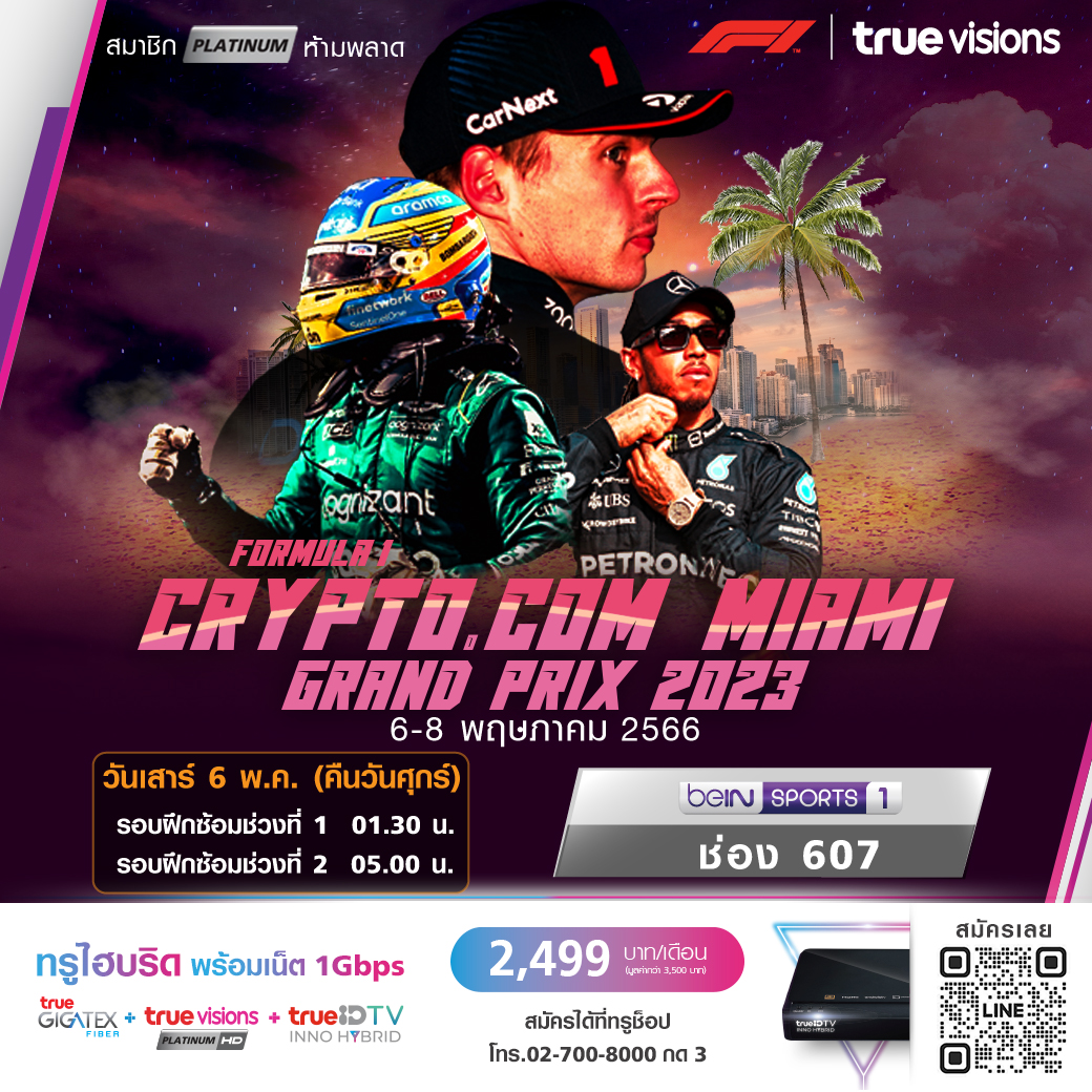 แฟนๆ รถสูตรหนึ่งต้องติดตามกันให้ได้ กับความมันของการแข่งขันในสหรัฐอเมริกา ดินแดนที่เต็มด้วยสีสันและเสน่ห์ที่ดึงดูดความสนใจ กับรายการ ไมอามี่ กรังด์ปรีซ์ มันส์กันทุกช่วงความเร็ว ลุ้นกันว่าใครจะผงาดขึ้นเป็นแชมป์ของสนามนี้ สดครบจุใจ ชมสด ทาง ทรูวิชั่นส์ ที่เดียว