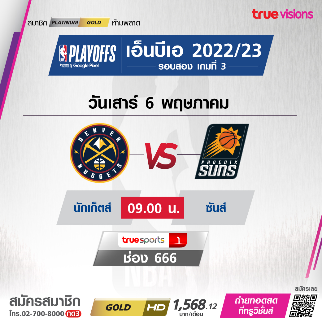 วันเสาร์ 6 พ.ค. Nuggets Vs Suns เวลา 09.00 ทางช่อง TS 1 (666)