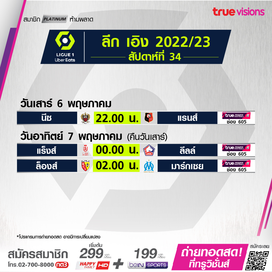Nice vs Rennes เวลา 22.00-00.00 ทางช่อง TPF 5 (605)
