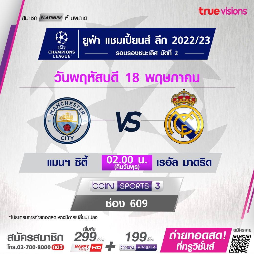 Man City vs Real Madrid เวลา 02.00-04.00 ทางช่อง beIN 3 (609)