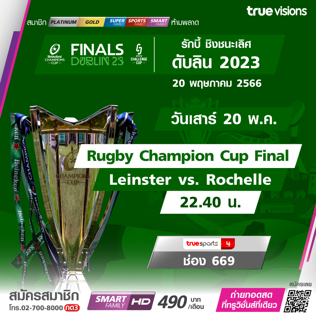สุดสัปดาห์แห่งความดุเดือดเร้าใจของกีฬารักบี้ฟุตบอลระดับโลก ลุ้นกันสุดมันส์กับ 2 แม็ตช์ 2 ความสะใจ และ 2 แชมป์จะตกเป็นทีมใด ประเดิมด้วย ชาลเล้นจ์ คัพ รอบชิงชนะเลิศ และพลาดไม่ได้กับศึกแห่งศักดิ์ศรี แชมเปี้ยนส์ คัพ รอบชิงชนะเลิศ สดจากกรุงดับลิน สาธารรัฐไอร์แลนด์ ชมสด แบบเอ็กซ์คลูซีฟ ที่ ทรูวิชั่นส์