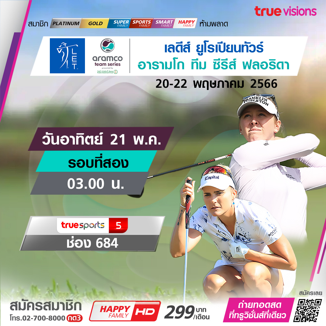 กอล์ฟ เลดี้ส์ ยูโรเปี้ยน ทัวร์ สัปดาห์นี้ โปรสาวทั่วโลก รวมทั้งอดีตแชมป์เมเจอร์หลายคน ร่วมชิงชัยในรายการ อารามโก้ ทีม ซีรี่ส์ ฟลอริด้า 2023 ชมสดครบทุกรอบ ทั้งประเภททีมและบุคคล แบบเอ็กซ์คลูซีฟ ชมสด ทาง ทรูวิชั่นส์ ที่เดียว
