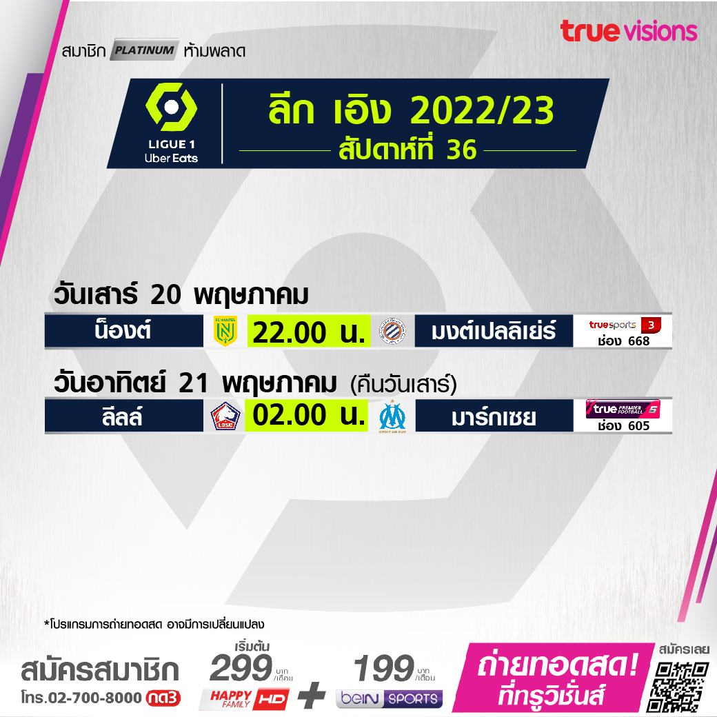 Lille vs Marseille เวลา 02.00-04.00 ทางช่อง TPF 5 (605)
