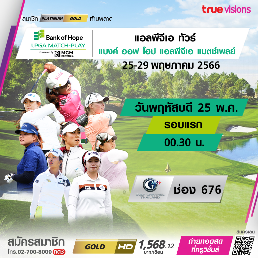 ขึ้นชื่อว่าแมตช์เพลย์ ความสนุกตื่นเต้นของกอล์ฟนั้นเกินขีดธรรมดาแน่นอน การดวลกันแบบตัวตัว ช็อตต่อช็อค หลุมต่อหลุม รอบต่อรอบ ใครทำได้ดีกว่าเข้ารอบไปจนกว่าจะมีลุ้นตำแหน่งแชมป์ สัปดาห์นี้ แฟนๆ จะได้สัมผัสเกมกอล์ฟ ที่เร้าใจจาก แบงค์ ออฟ โฮป แอลพีจีเอ แมตช์เพลย์ ชมสดจุใจ ชมสด ทาง ทรูวิชั่นส์