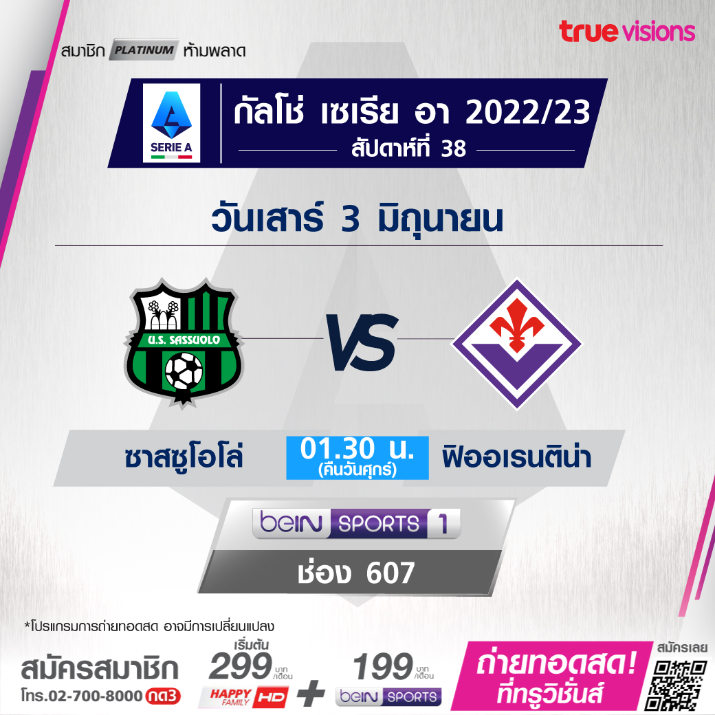Sassuolo vs Fiorentina เวลา 01.30-03.30 ทางช่อง beIN 1 (607)