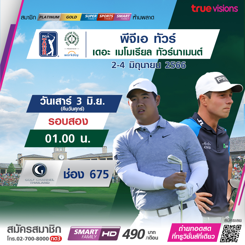 กอล์ฟ พีจีเอ ทัวร์ รายการ เดอะ เมมโมเรียล ทัวร์นาเมนต์ ที่เมียร์ฟิลด์ วิลเลจ กอล์ฟ คลับ ที่เมืองดับลิน รัฐโอไฮโอ โปรแถวหน้าของโลกร่วมแข่งขันเพื่อเป็นเกียรติให้กับเจ้าภาพ ลุ้นกันว่าใครจะได้แชมป์ และรับโทรฟี่จากตำนานอย่าง แจ็ค นิคลอส สดทุกรอบ ชมสด ทาง ทรูวิชั่นส์ ที่เดียว