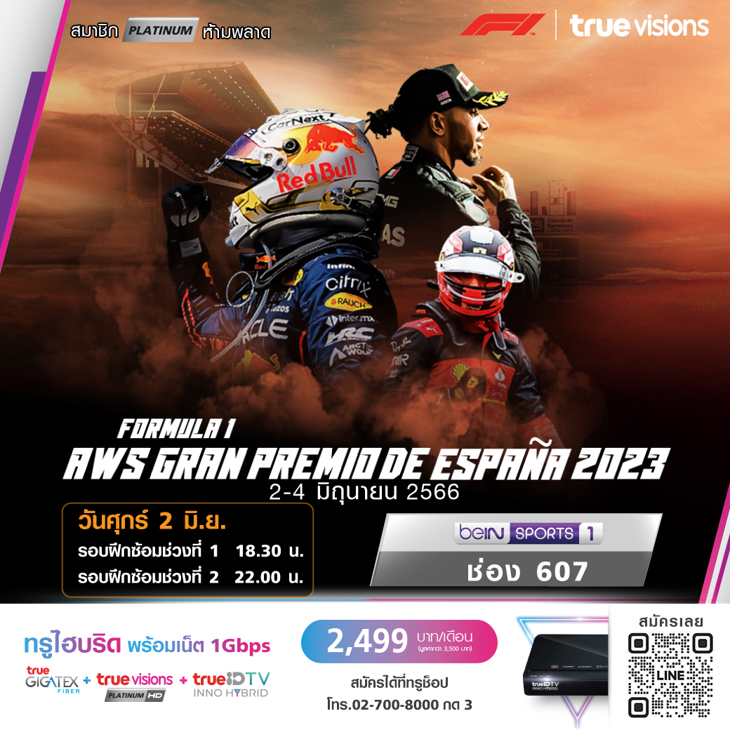 ทวีปยุโรปเดือดสุดๆ เมื่อทุกทีมปักหลักสู้กันแบบสนามต่อสนาม รอบต่อรอบ อันดับต่ออันดับ เพื่อลุ้นเก็บชัยชนะและคะแนนสะสมอันล้ำค่า ศึกเจ้าความเร็ว ฟอร์มูล่า วัน สัปดาห์นี้ ไปกันที่แดนกระทิงดุ สเปน กับความยิ่งใหญ่ของ สแปนิช กรังด์ปรีซ์ ที่สนาม กาตาลุนญ่า เซอร์กิต ชมสดทุกช่วงสำคัญ ชมสด ทาง ทรูวิชั่นส์