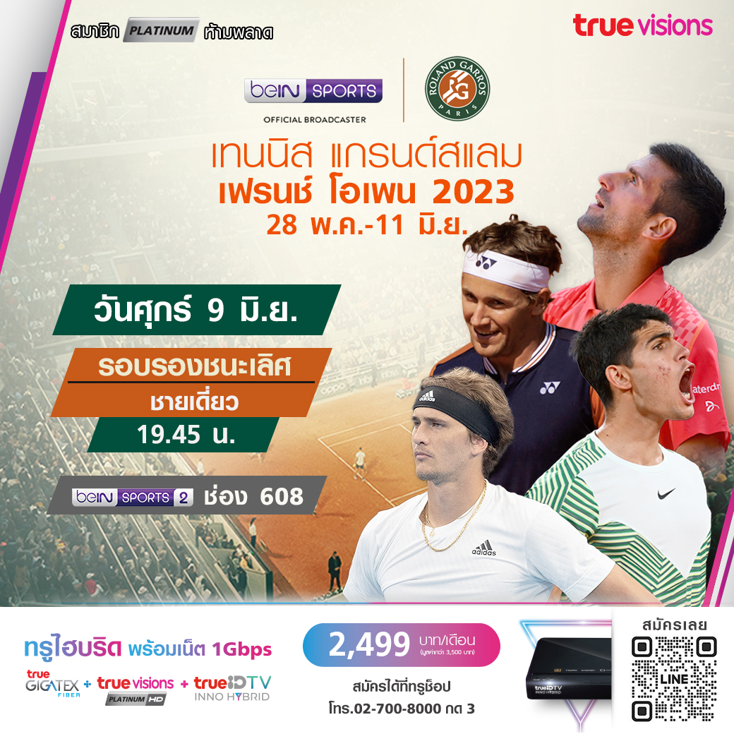 ศึกเทนนิส แกรนด์สแลมที่ 2 ของปี เฟร้นช์ โอเพ่น 2023 ที่ โรลังด์ การ์รอส กรุงปารีส ประเทศฝรั่งเศส มาถึงในรอบรองชนะเลิศ ชายเดี่ยว ร่วมลุ้นกันว่าใครจะเป็นราชาคอร์ตดินปีนี้ ชมสด ทาง ทรูวิชั่นส์