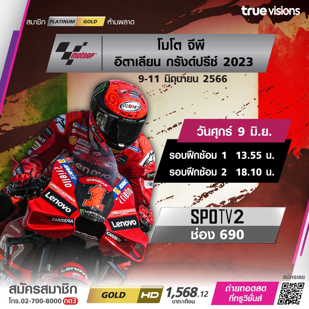 ความมันส์ระดับโลกของเจ้าความเร็วอย่าง โมโต จีพี มาพบกับแฟนๆ อีกครั้งกับ สนามที่ 6 ของฤดูกาล เตรียมสัมผัสกับความยิ่งใหญ่ระดับสุดคลาสสิกอย่าง อิตาเลียน กรังด์ปรีซ์ ที่สังเวียน มูเกลโล่ อินเตอร์เนชั่นแนล เซอร์กิต ในอิตาลี ร่วมลุ้นกันว่าใครจะคว้าชัย ลุ้นกันสดๆ ทุกช่วงการแข่งขัน ชมสด ทาง ทรูวิชั่นส์