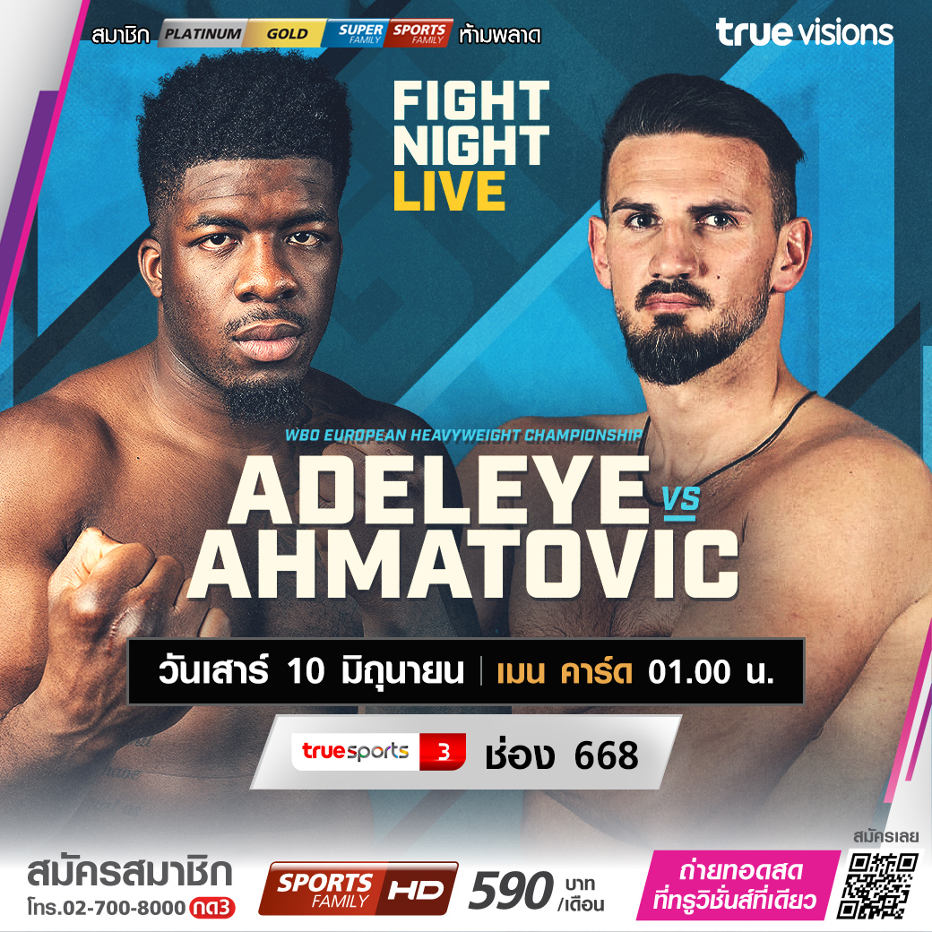 แฟนกีฬาหมัดมวยได้เฮอีกแล้ว กับไฟต์สุดมันส์จากเมืองผู้ดีอังกฤษ สัปดาห์นี้ นัดดวลเดือดกันที่ ยอร์ค ฮอลล์ ประเทศอังกฤษ คู่เอก ดาวโรจน์แดนผู้ดีที่ฟอร์มกำลังสด เดวิด อเดเลเย ป้องกันแชมป์ดับเบิ้ลบีโอ ยูโรเปี้ยน รุ่น เฮฟวี่เวต กับ เอมีร์ อาห์มาโตวิช พร้อมด้วยคู่ประกอบรายการสุดมันส์อีกหลายไฟต์ ชมสด ทาง ทรูวิชั่นส์ ที่เดียว