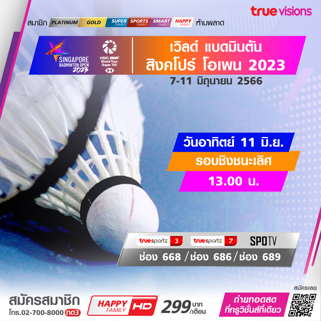 แบดมินตันเก็บคะแนนสะสมโลก สิงคโปร์ โอเพ่น รายการระดับเวิลด์ ทัวร์ 750 มาถึงในรอบรองชนะเลิศ เชียร์นักแบดระดับโลกลุ้นแชมป์ ชมสดจุใจ ที่ ทรูวิชั่นส์