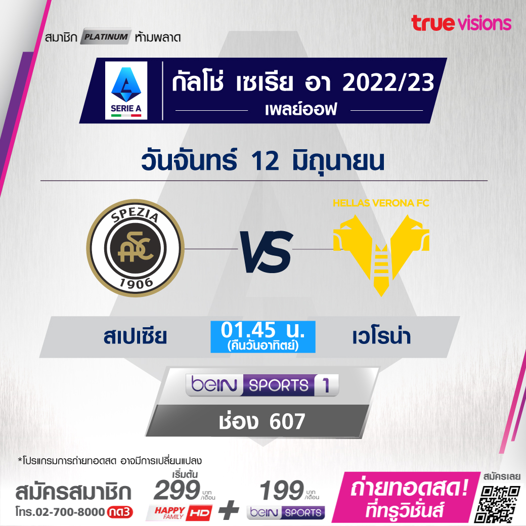 Spezia vs Verona เวลา 01.45-03.45 ทางช่อง beIN 1 (607)