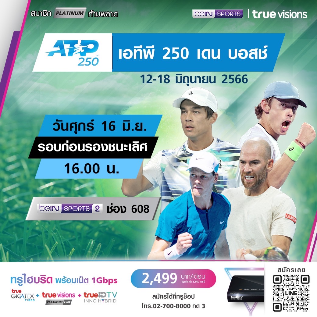 เทนนิสชาย เอทีพี 250 รายการ เดน บอสช์ โอเพ่น ที่เนเธอร์แลนด์ มาถึงในรอบก่อนรองชนะเลิศ มือดี มือท็อปของทัวร์ ทั้งรุ่นเก๋าและคลื่นลูกใหม่ไฟแรงมาแย่งแชมป์กันแบบครบๆ ชมกันสดๆ ทุกรอบสำคัญ