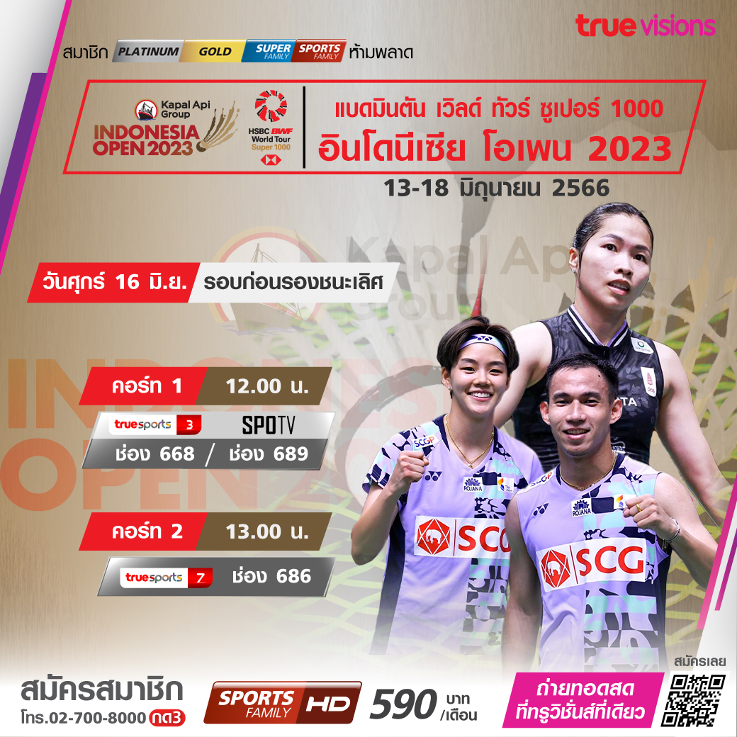 แบดมินตัน เวิลด์ทัวร์ เก็บคะแนนสะสมโลก สัปดาห์นี้ พบกับความยิ่งใหญ่ระดับ ซูเปอร์ 1000 อินโดนีเซีย โอเพ่น จากกรุงจาการ์ต้า อินโดนีเซีย ร่วมเชียร์นักแบดมินตันไทย สู้สุดใจเพื่อคว้าชัยกับนักแบดมินตันระดับโลก สดจุใจ ตั้งแต่รอบแรก ถึงรอบชิงชนะเลิศ